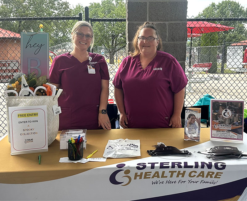 Staff from the Sterling Health Care Stanton location were in attendance at the Powell County Community Health Night held in Stanton Park on August 28. They were joined by many of the other medical facilities and pharmacies within the county. Alicia Bowman (left), Community Health Worker, discussed the various resources that SHC can provide to families in need, while joining Brandy Perdue, Certified Medical Assistant (right) in handing out informational brochures and promotional bags.