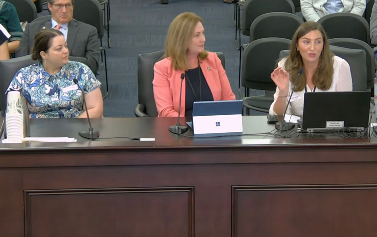 Sterling Health Care’s Dr. Leslie Aslam, Director of Behavioral Health Services, and Rebecca Redd, Licensed Clinical Social Worker, joined Representative Kimberly Poore Moser in presenting legislation regarding the Psychiatric Collaborative Care Model to the Interim Joint Committee on Banking and Insurance. This legislation would allow Kentucky insurance companies to bill for services that are specific to the care model, which has the greatest amount of evidence supporting it. Currently, care conferences, which are a core part of the model, pose an issue of lost productivity for organizations who use it. Allowing insurances to bill for these interactions can act as an incentive for other organizations to employ the model for their behavioral health patients. Above, Redd (left) and Aslam (right) can be seen with Representative Moser during the presentation.