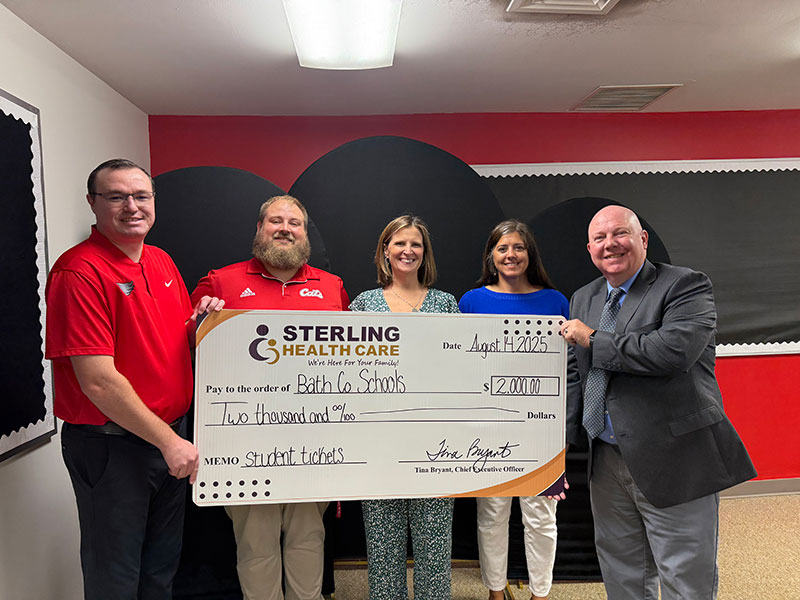 September 26, 2025 - Sterling Health Care (SHC) delivered a financial boost to five area school districts recently with provision of a total $13,500 in check presentations to its School-Based Health Program participants. The donations assist schools in covering the costs of student admissions to athletic events.