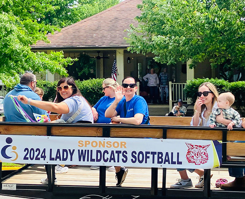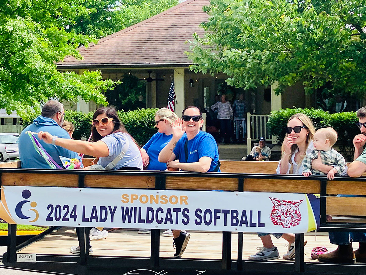 Several employees and their families took a seat on the benches of Sterling Health Care’s (SHC) float in the May Day Festival Parade in Owingsville last Saturday. Thanks to a partnership with Two Sisters Pumpkin Patch, SHC rode through downtown Owingsville in comfort on a large wagon, greeting those at the parade. Multiple SHC team members are pictured above during the parade. From left are Angel Rogers, School-Based Health Coordinator; Laura Rogers, Pharmacist at SHC-Stanton; Shaunna Binion, Practice Manager at SHC’s Main Campus; and Hannah Kissick, optometrist, who is pictured with her child.