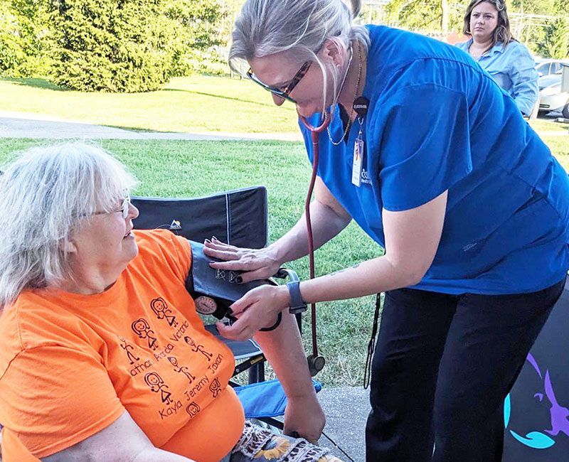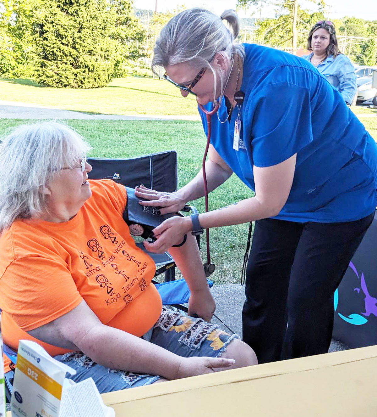 SHC’s Stanton location was one of several local organizations that gathered for the 3rd Annual Powell Co. Community Health Fair. Those who visited SHC’s booth had the chance to receive several health checks, including blood pressure checks and blood glucose checks. Visitors also got the chance to enter into a giveaway for a Hamilton Beach Indoor Grill. SHC’s Jennifer Fitzpatrick, Certified Medical Assistant at the Stanton location, can be seen above, providing a health check to one of the booth’s several visitors.