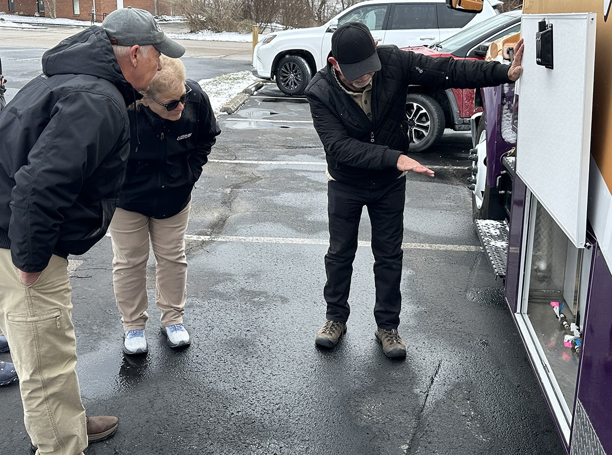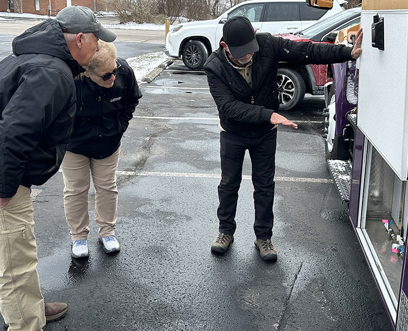 Several members of the Sterling Health Care (SHC) team, including some of the executive management team, took a trip to Frankfort to receive training for the long-awaited SHC mobile unit. Mobile unit designer Jales Mello can be seen above providing training tips to Sandy Gifford, SHC Mobile Unit Coordinator, and Wayne Toy, SHC Transportation Coordinator, on different operations of the unit.