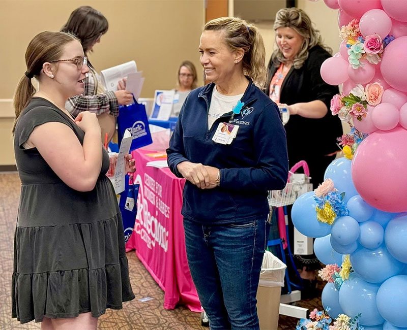 Sterling Health Care’s Joanna Banks shares information with a visitor to Saturday’s Maternity Fair, co-sponsored by SHC and held at Clark Regional Medical Center in Winchester. This is the second year for the event.