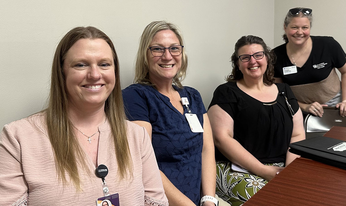 Several of Sterling Health Care’s (SHC) community health workers (CHWs) attended a Budgeting 101 workshop at the Clark County Community Services building in Winchester on Thursday, April 24. The workshop, held in conjunction with the University of Kentucky Cooperative Extension Services and Clark County Public Schools Family Resource Youth Services Centers, focused on how to create and follow a budget. Pictured above are, from left, SHC CHWs Shauna Brunner, Alicia Bowman, and Michelle Toller, with Shonda Johnston of the UK Cooperative Extension Services.