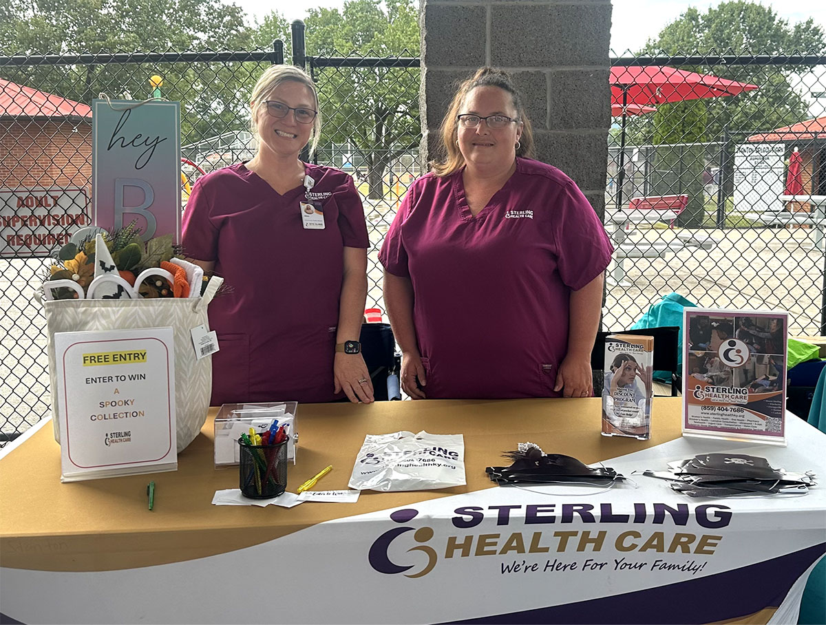 Staff from the Sterling Health Care Stanton location were in attendance at the Powell County Community Health Night held in Stanton Park on August 28. They were joined by many of the other medical facilities and pharmacies within the county. Alicia Bowman (left), Community Health Worker, discussed the various resources that SHC can provide to families in need, while joining Brandy Perdue, Certified Medical Assistant (right) in handing out informational brochures and promotional bags.