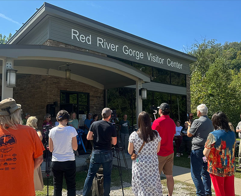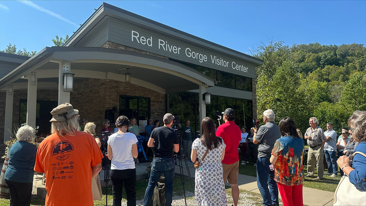 Sterling Health Care (SHC) was represented when a ribbon cutting was held at the Red River Gorge Visitor Center in Slade, KY, in early September. Through a partnership with Mountain Association and Appalachian Energyworks, the Powell County Tourism Commission has become the first and only tourism commission in Kentucky to achieve net zero energy consumption. To celebrate this achievement, the Red River Gorge Chamber of Commerce held a ribbon cutting ceremony at the Red River Gorge Visitor Center in Slade, KY. Collaboration between the organizations allowed the installation of solar panels and two electric vehicle chargers, which marked the 100th solar installation for the Mountain Association. Alicia Bowman, SHC Community Health Worker, was one of several community members in attendance at the event.