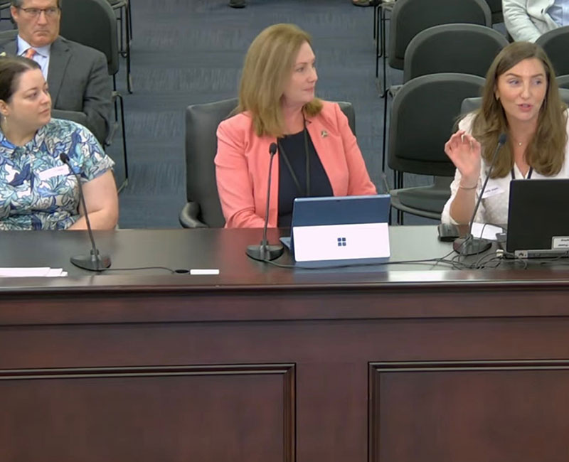 Sterling Health Care’s Dr. Leslie Aslam, Director of Behavioral Health Services, and Rebecca Redd, Licensed Clinical Social Worker, joined Representative Kimberly Poore Moser in presenting legislation regarding the Psychiatric Collaborative Care Model to the Interim Joint Committee on Banking and Insurance. This legislation would allow Kentucky insurance companies to bill for services that are specific to the care model, which has the greatest amount of evidence supporting it. Currently, care conferences, which are a core part of the model, pose an issue of lost productivity for organizations who use it. Allowing insurances to bill for these interactions can act as an incentive for other organizations to employ the model for their behavioral health patients. Above, Redd (left) and Aslam (right) can be seen with Representative Moser during the presentation.