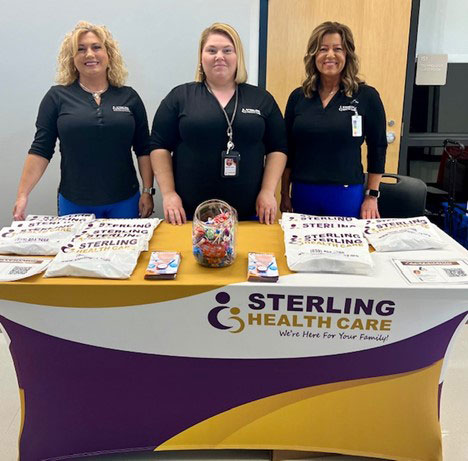 April 11, 2024 - Sterling Health Care (SHC) met with graduating students of Maysville Community and Technical College (MCTC), Rowan County Campus to discuss career opportunities at the Grad Bash event on Monday, April 8. SHC also attended the Grad Bash event for MCTC’s Montgomery County Campus on Thursday. Pictured above are, from left, SHC’s Jennifer Carpenter, Human Resources Director; Michelle Lesieur, Administrative Assistant; and Shelia Logan, Executive Assistant.
