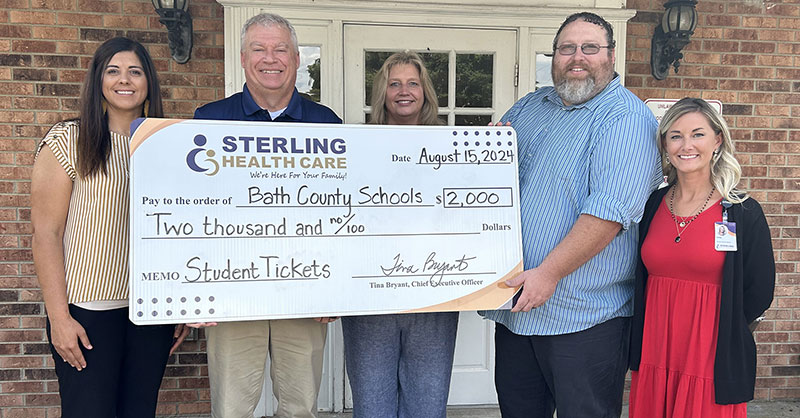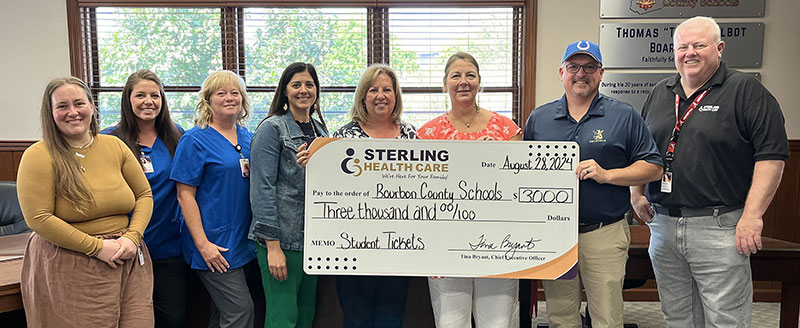 September 20, 2024 - MOUNT STERLING, KY - Sterling Health Care (SHC) delivered a welcomed financial boost to five area school districts in recent weeks with provision of a total $13,500 in check presentations to its School-Based Health Program participants. The donations are given to assist SHC’s school-based partners in covering the costs of game-day admissions for students to athletic competitions at the school, eliminating financial concerns for some while providing equal enjoyment opportunities for all.