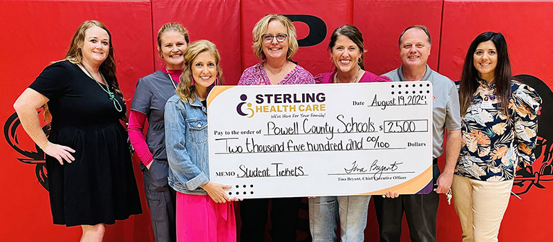 “We are very excited to team up with Sterling Health Care for school-based health services again this year, and really appreciate the way they step up for every student in the district through this donation and in so many other ways,” said Dr. Jennifer Kincaid, principal of Powell County High School. “Fairness and equal opportunities are such critical pieces of the whole school experience and these funds reflect a commitment to helping us provide those principles to all of our students.”