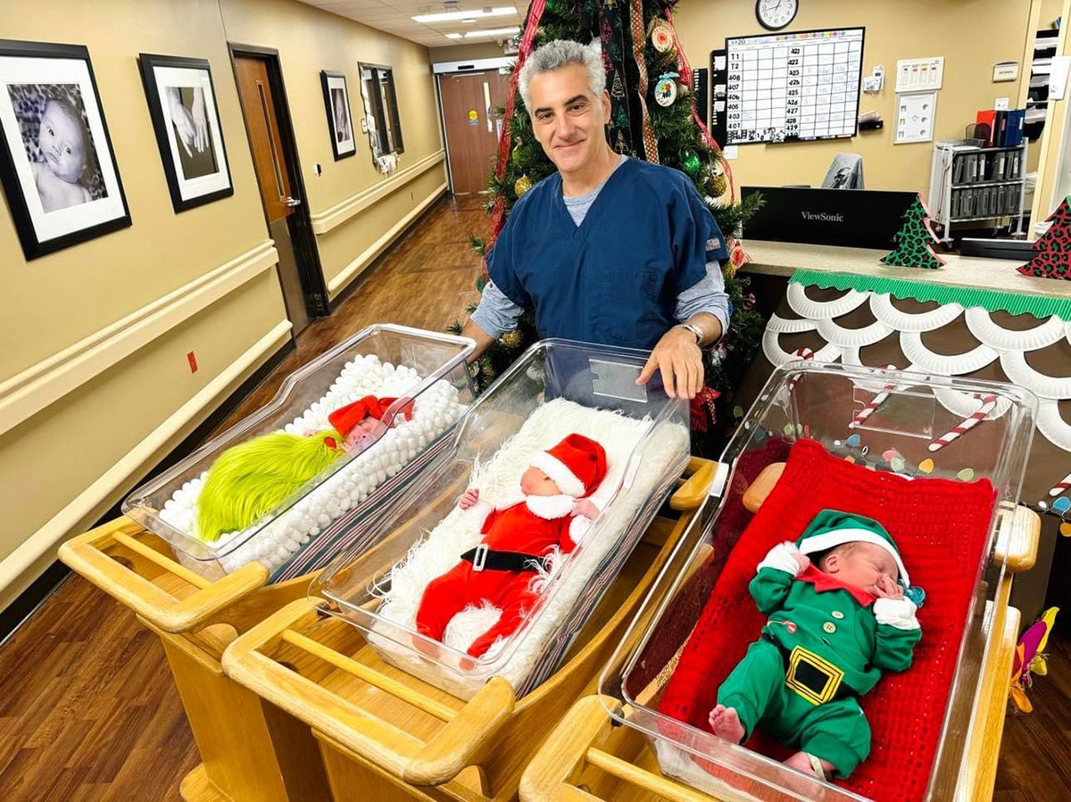 December 22, 2023 - Dr. Anthony Smith, OB/GYN, and the rest of the Sterling Health Care Women's Health team celebrate the arrivals of beautiful new gifts this holiday season, and look forward to continuing their partnership with Clark Regional Medical Center in providing excellent care to expectant mothers and newborns.